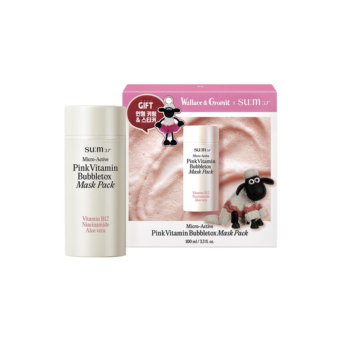 Su:m37°’s “Micro-Active Pink Vitamin Bubbletox Mask Pack”: one step total care.