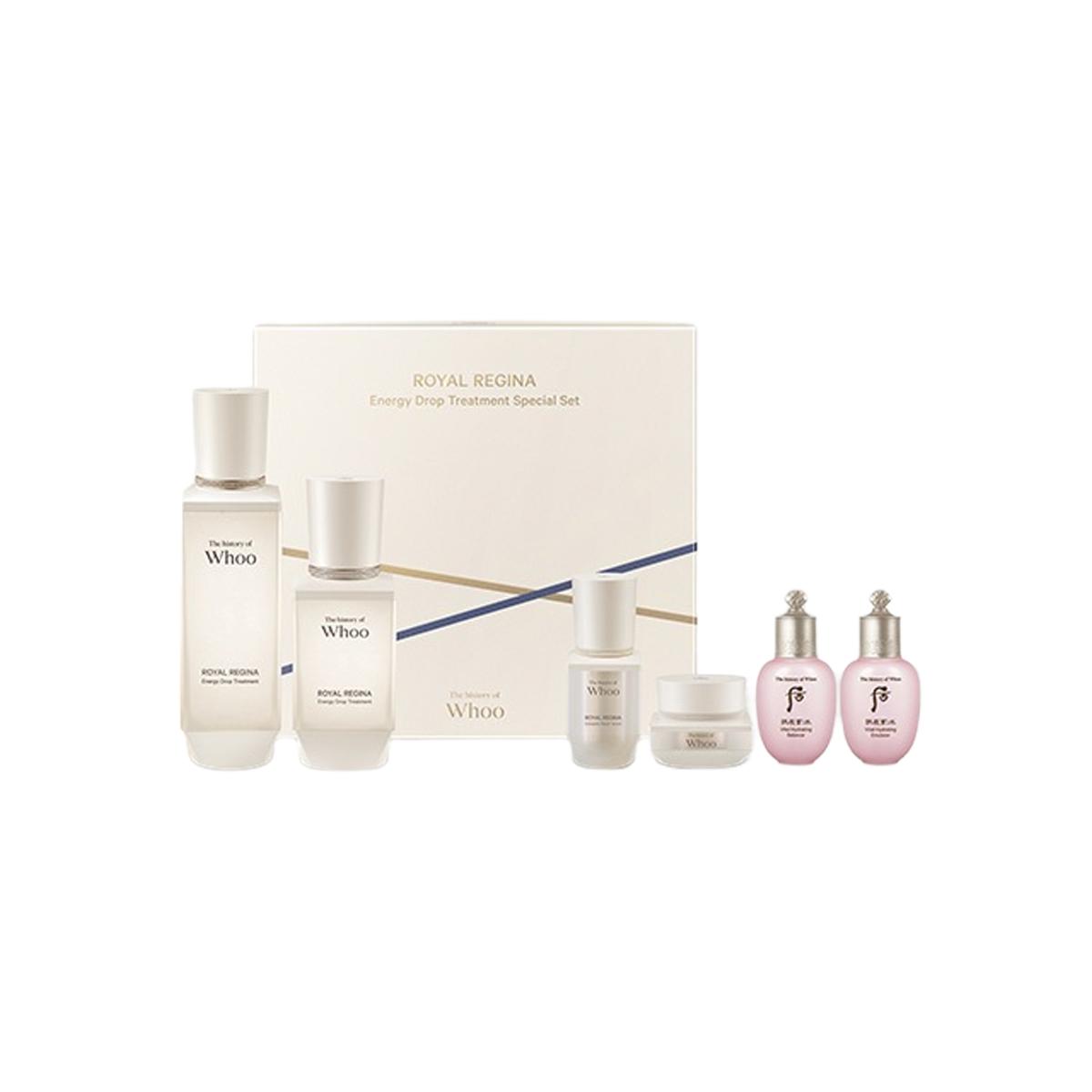 The History of Whoo’s “Royal Regina Energy Drop Treatment” is a first-step skincare treatment designed to soothe the skin while promoting a well-hydrated and radiant complexion.